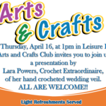 Arts and Crafts Club – April 16By Site Admin / April 15, 2026 Please see the attached for further details.