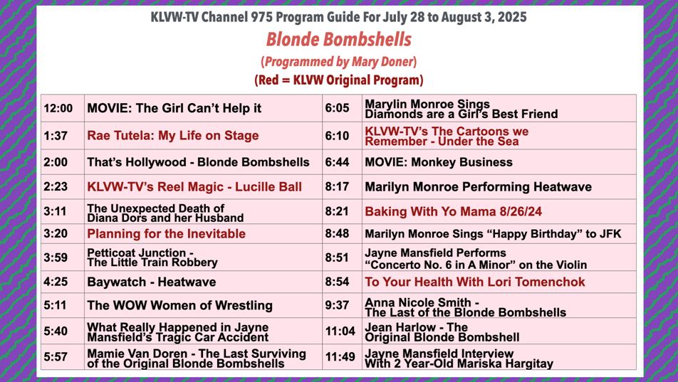 Please see the attached KLVW-TV Programming Guide for 7/28/25-8/3/25.