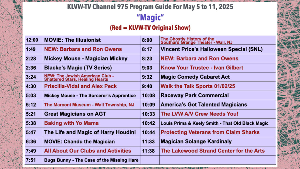 Please see the attached KLVW-TV Programming Guide for 5/5/25-5/11/25.