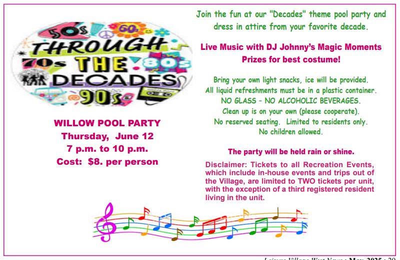 Thursday is going to be a scorcher! Stay COOL in the POOL at the Willow Pool Party on Thursday, June 12 from 7-10 PM. Dance through the Decades with DJ […]