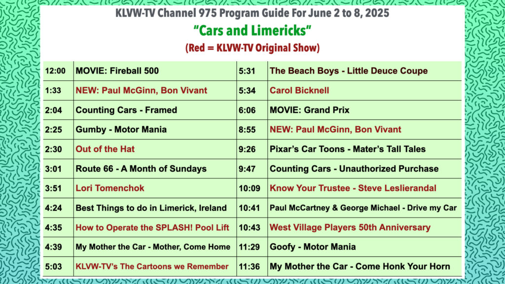 Please see the attached KLVW-TV Prgramming Guide for 6/2/25-6/8/25.