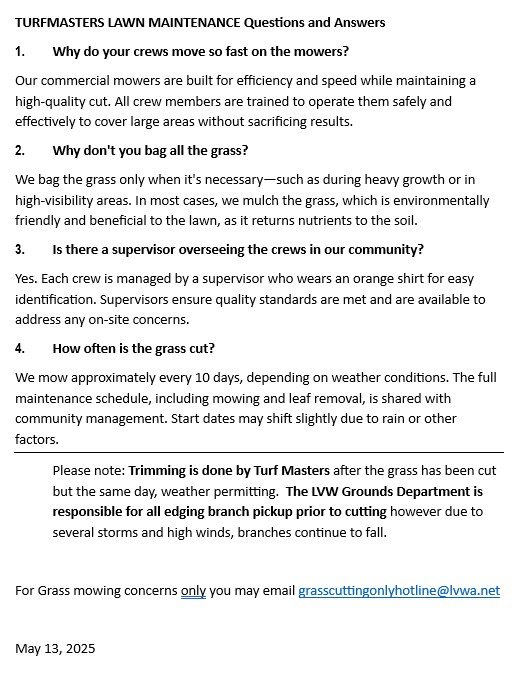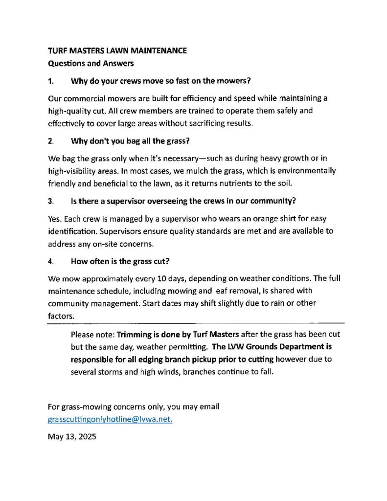 Please see the attached Turf Masters Frequently Asked Questions.
