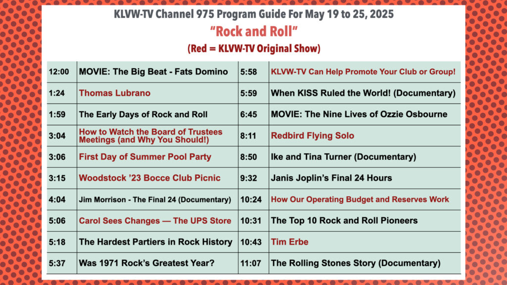 Please see the attached KLVW-TV Programming Guide for 5/19/25-5/25/25.