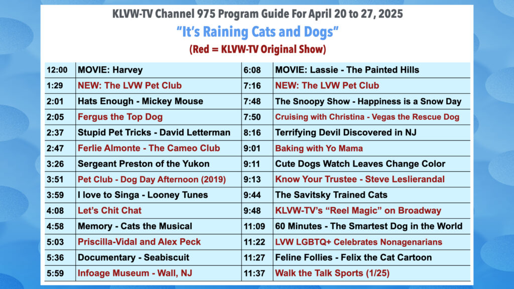 Please see the attached KLVW-TV Programming Guide for 4/14/25-4/20/25.