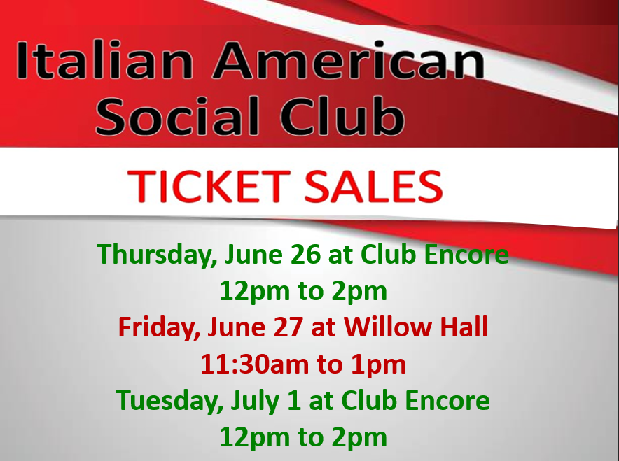 Italian American Club – Ticket SalesClub Newsletters / Site Admin Please see the attached for further details. Italian American Club – Ticket Sales Read More »