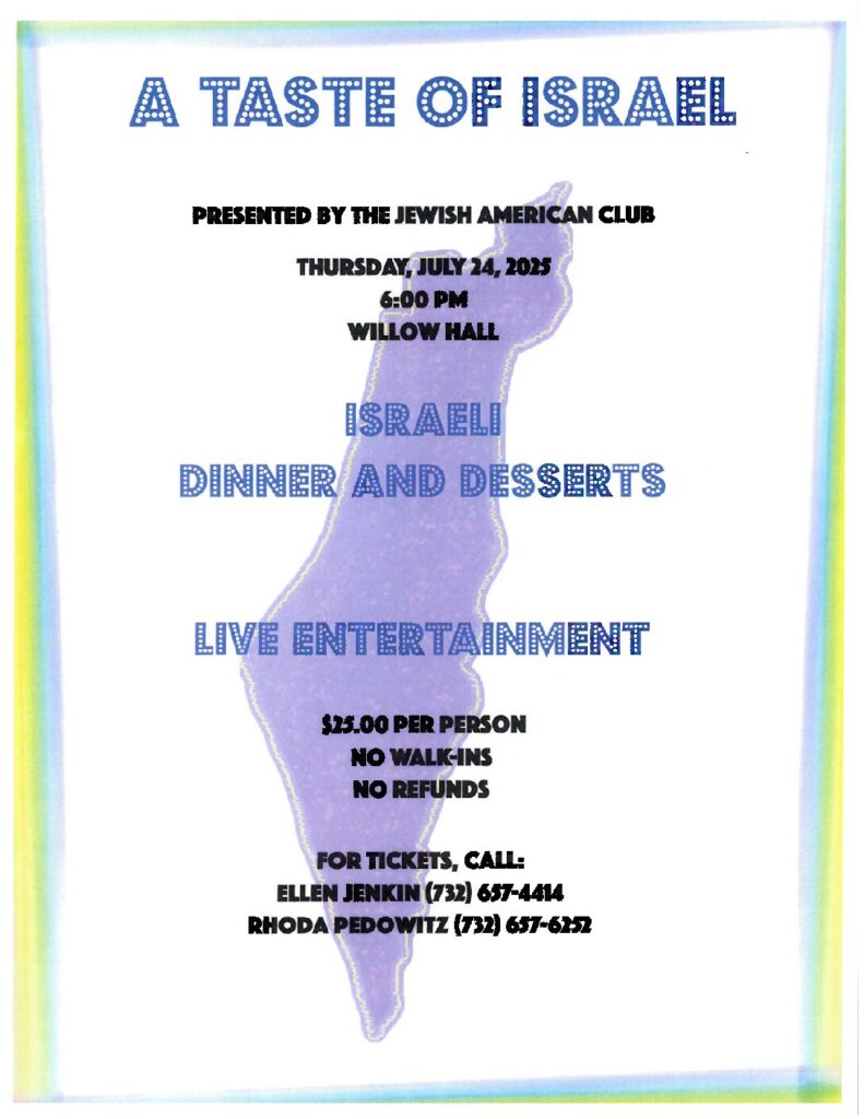 Jewish American Club – A Taste of IsraelClub Newsletters / Site Admin Please see the attached flyer for details. Jewish American Club – A Taste of Israel Read More »