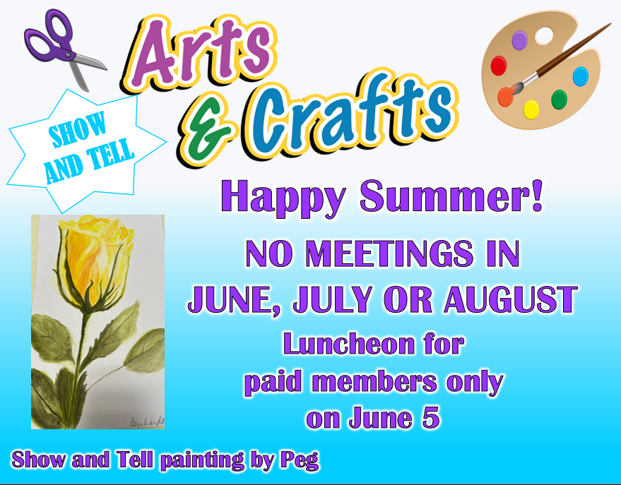 Arts and Crafts – Summer 2025Club Newsletters / Site Admin Please see the attached for further details. Arts and Crafts – Summer 2025 Read More »