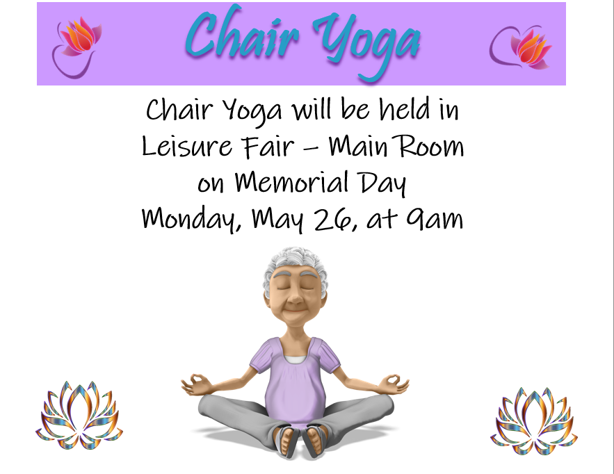 Pay As You Go Yoga – May 2025Club Newsletters / Site Admin Please note that Chair Yoga on Monday, May 26th will be held at Leisure Fair – Main Room. Pay As You Go Yoga – May 2025 Read More »