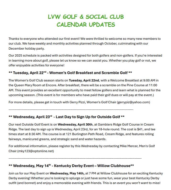 Golf and Social Club Calendar UpdatesClub Newsletters / Site Admin Please see attached for details. Golf and Social Club Calendar Updates Read More »