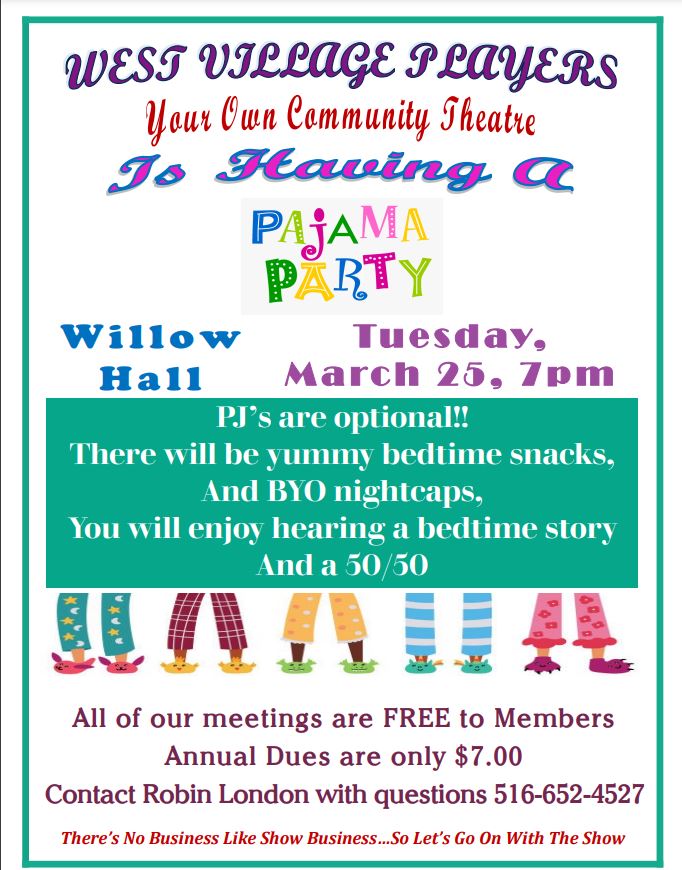 West Village Players Club March FundraiserClub Newsletters / Site Admin Please see attached flyer for details. West Village Players Club March Fundraiser Read More »