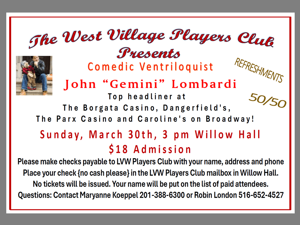 West Village Players Club – March 2025Club Newsletters / Site Admin Please see the attached for details. West Village Players Club – March 2025 Read More »