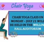 Chair Yoga 7/21/25By Site Admin / July 18, 2025 Please note that the Chair Yoga class on Monday, July 21st, will be held in the WILLOW HALL AUDITORIUM.