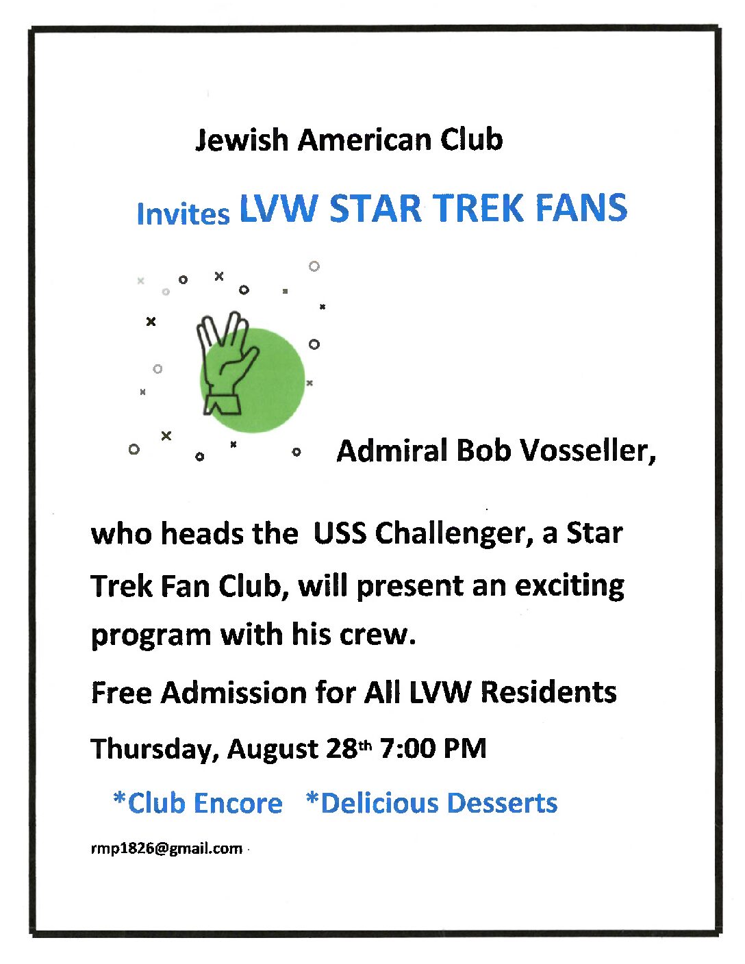 Jewish American Club Star Trek Program