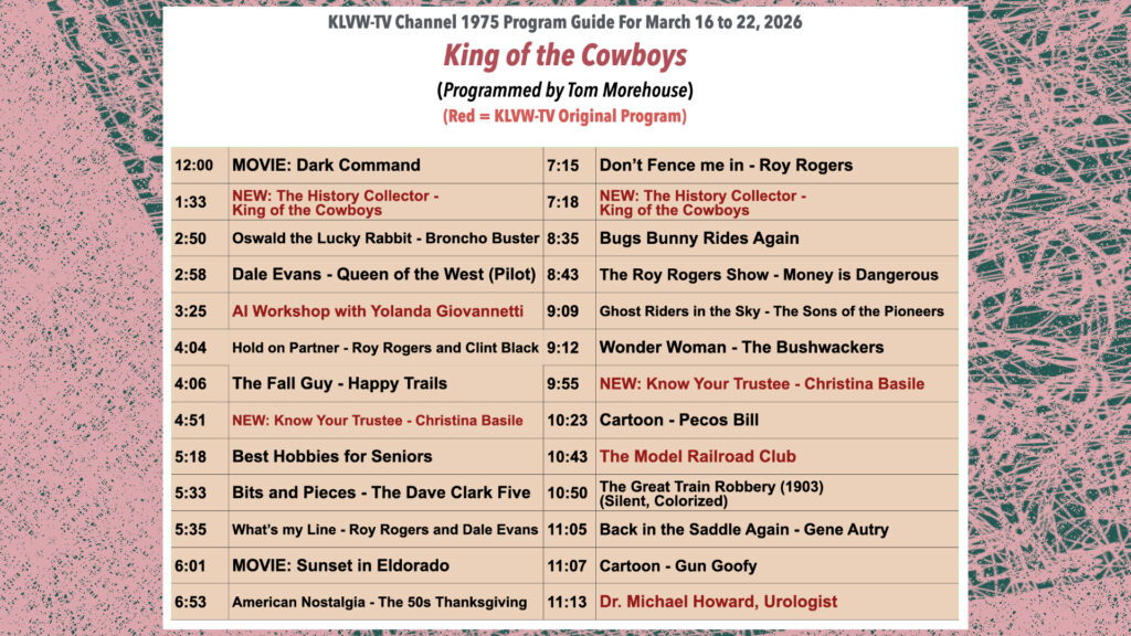 KLVW-TV Channel 1975 Programming Guide for 3/16/26-3/22/26By Site Admin / March 16, 2026 Please see the attached KLVW-TV Channel 1975 Programming Guide for 3/16/26-3/22/26.