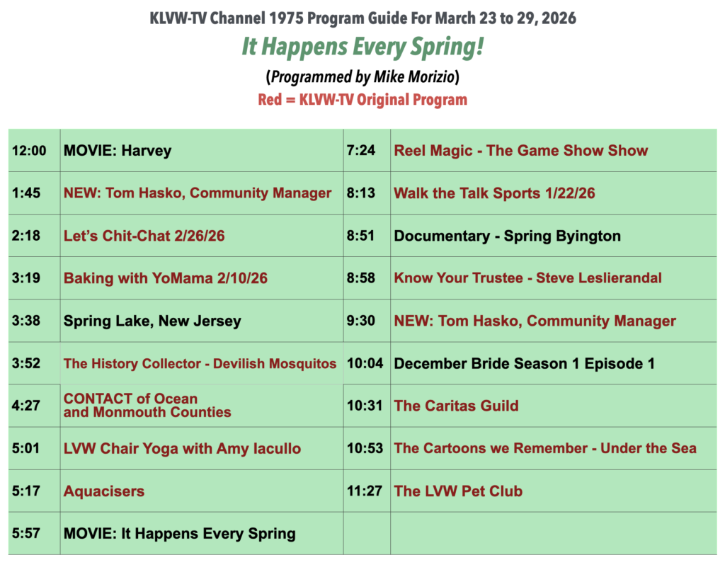 KLVW-TV Channel 1975 Programming Guide for 3/23/26-3/29/26By Site Admin / March 23, 2026 Please see the attached KLVW-TV Channel 1975 Programming Guide for 3/23/26-3/29/26.