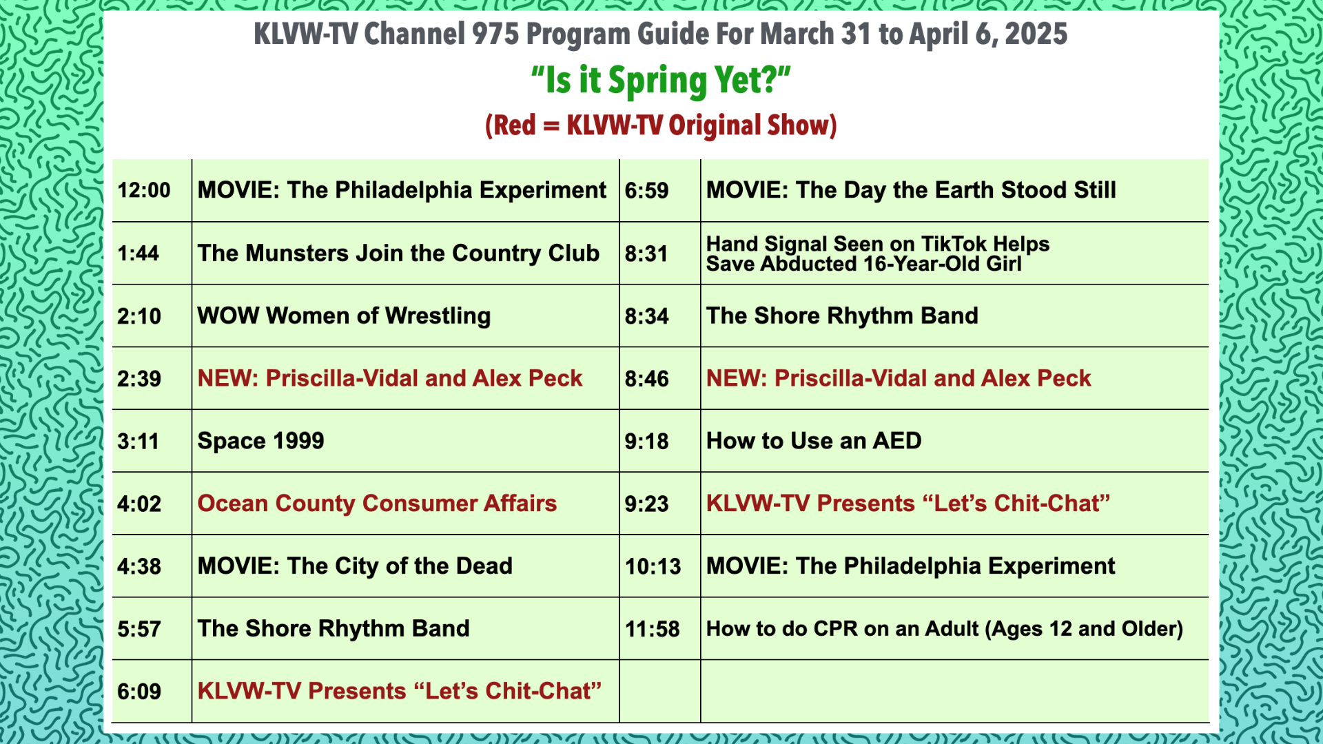 KLVW-TV Programming Guide for 3/31/25-4/6/25By Site Admin / March 31, 2025 Please see the attached KLVW-TV Programming Guide for 3/31/25-4/6/25.