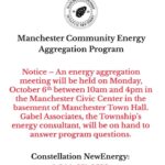 Manchester Community Energy Aggregation ProgramBy Site Admin / September 25, 2025 Please see the attached flyer for meeting details.