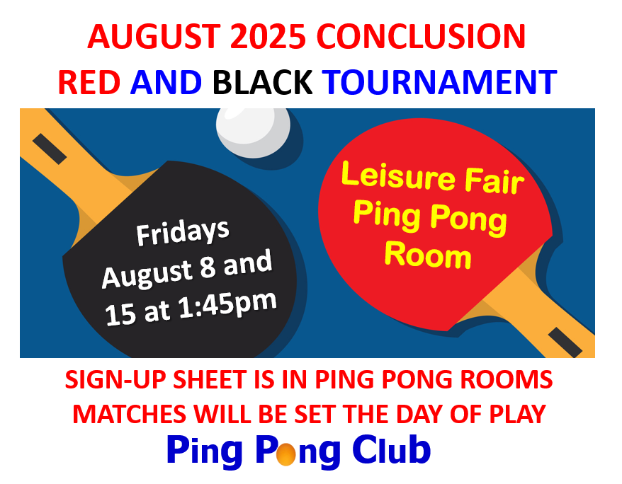 Ping Pong Club – August 2025By Site Admin / July 22, 2025 Please see the attached for further details.