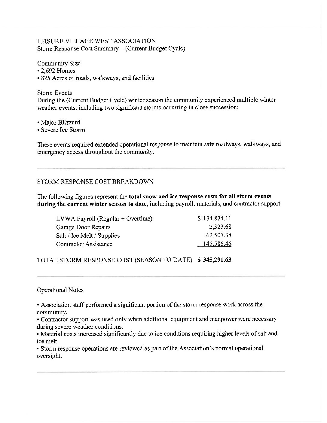 Storm Response Cost Summary